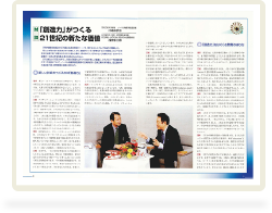 連載対談シリーズ「フロントライン」2006年4号から科学ジャーナリストとして活躍する竹内薫氏を迎え,日立のキーパーソンとの対談を連載した。2008年からの1年間は社外有識者との対談に変え,西垣通氏,村上陽一郎氏,松井孝典氏(以上,東大名誉教授)らを招いた。