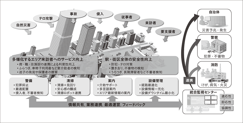 人々が行き交う市街地には,海外で頻発しているテロや突発的な傷害事件などの犯罪,ゲリラ豪雨・地震などの予期せぬ自然災害,交通事故や火災などさまざまなリスクが潜んでいる。特に2019年,2020年に国際的な大規模イベントを控えた日本においては,多様化し複雑化するこれらのリスクへの対応が急務となっている。