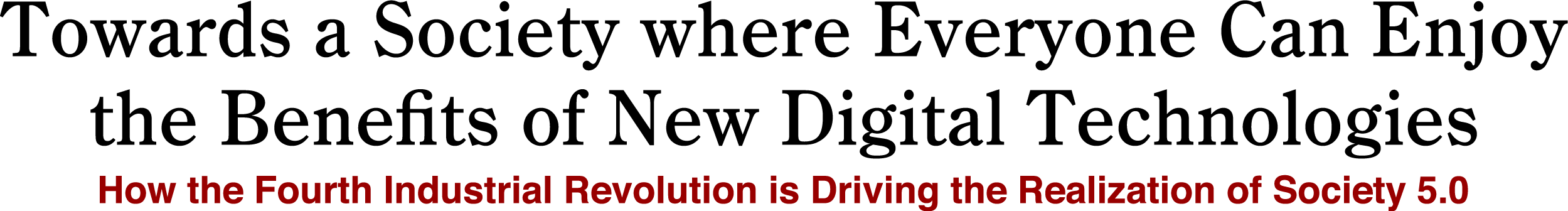 In industry, a Fourth Industrial Revolution is underway at a global level that seeks to use technologies such as the Internet of Things and artificial intelligence to deliver a dramatic boost in productivity along with products and services offering high added value. While expectations of these increasingly sophisticated digital technologies continue to grow, many challenges remain when it comes to using these technologies to transform society. This poses the question: what sort of ideas and actions are needed to resolve these challenges and push ahead with digital technology?