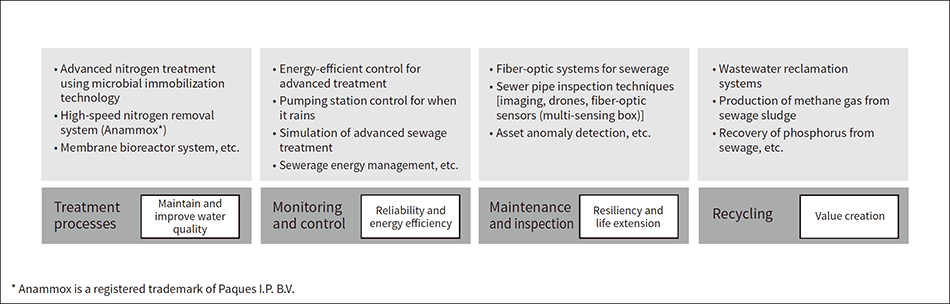 Internationally, Japan is one of the countries that has achieved a high level of success in dealing with sewerage, including by maintaining high standards of treated water quality and reliability of operation. Moreover, utilities and relevant government agencies are seeking to maintain standards by pursuing future-oriented measures that address changes in both the business and natural environments, including the increasing need for equipment upgrades, rising public expectations, fewer young engineers entering the profession, and climate change in the form of more frequent heavy rainstorms.