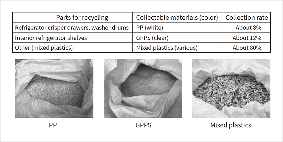 Procurement activities for plastic materials have been challenging for some time. In addition to price variations caused by crude oil market conditions, procurement is also affected by supply restrictions imposed by Japanese producers of PP and other plastic materials. These restrictions stem from high demand, aging production equipment and plant problems. These conditions are helping promote greater use of recyclables in the home appliance segment, where sales volumes are high, and discounts are extreme. Meanwhile, in terms of colors, production yield and other areas, new materials are still superior to recyclables. The next section discusses future issues and solutions for recyclables, looking at the example of their use in refrigerators (which grew significantly in FY2018).