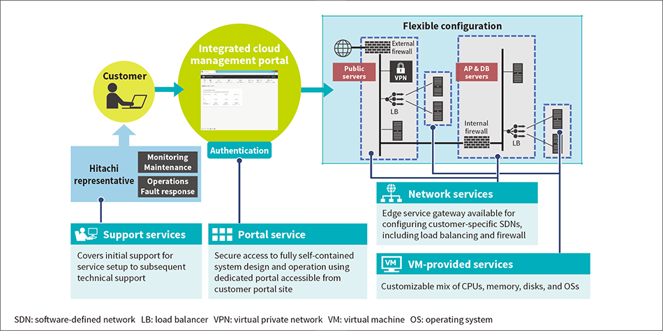 Interest in public clouds remains high, both as a means of DX and in response to changes in economic activity brought about by the spread of COVID-19. Among the things customers are looking for in a public cloud are rapid system configuration, lower system deployment and operating costs, and support for the rollout of new systems. Along with an existing public cloud system that features high availability and reliability, Hitachi is also responding to customer requirements by adding value in the following ways.