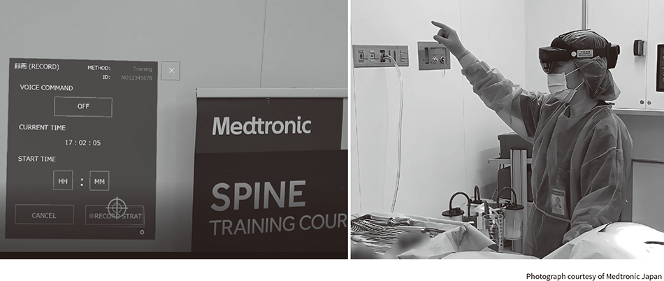 As new devices enter medical use, doctors, nurses, and other medical practitioners are continually being called upon to quickly familiarize themselves with new equipment and skills. To facilitate this, Hitachi Solutions, Ltd. offers a service that uses MR technology from Microsoft Corporation. Based on consultations with experts from Medtronic Japan Co., Ltd., a Japanese subsidiary of the world’s largest medical device company, it was suggested that this service could be of benefit to theater nurses in operating theaters. Hitachi Solutions has now partnered with Hitachi Solutions Create, Ltd. to develop a training tool called HoloMe that shows where an experienced theater nurse directs their attention while working. This article describes the development of this tool, which became available from Medtronic Japan in March 2022, as well as the technologies used and the benefits anticipated.