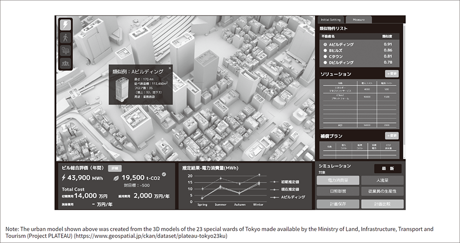 One of the issues for real estate developers is that they face high coordination costs due to the many different consultants they need to engage during the early stages of the core design for building development, making it difficult for them to assess performance indicators in terms of a complex mix of different factors. As this issue is one that also involves other stakeholders, including power transmission and distribution business operators, local government, and the community, it is not easy for developers to address on their own.